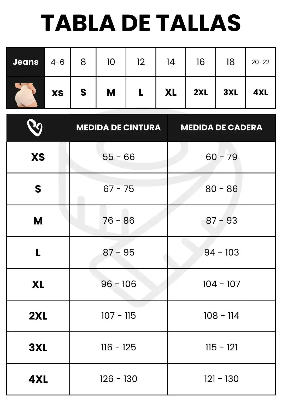 1. Selecciona la talla correcta: Revisa la tabla de medidas y elige la talla que más se ajuste a tu cintura y cadera. Si estás entre dos tallas, elige la mayor para mayor comodidad.